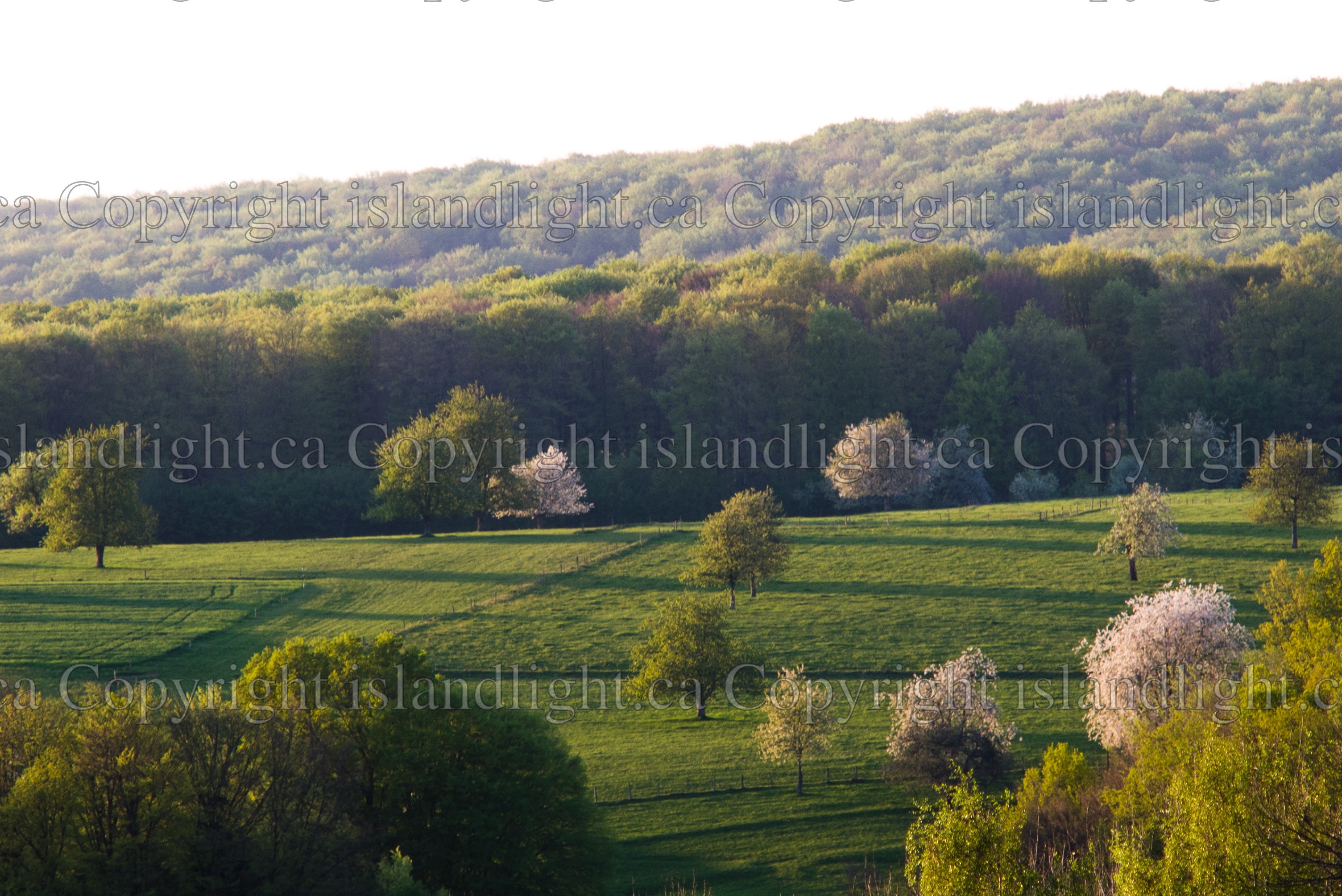 Pasture with Flowering Trees ~ Landscape Stock Photo