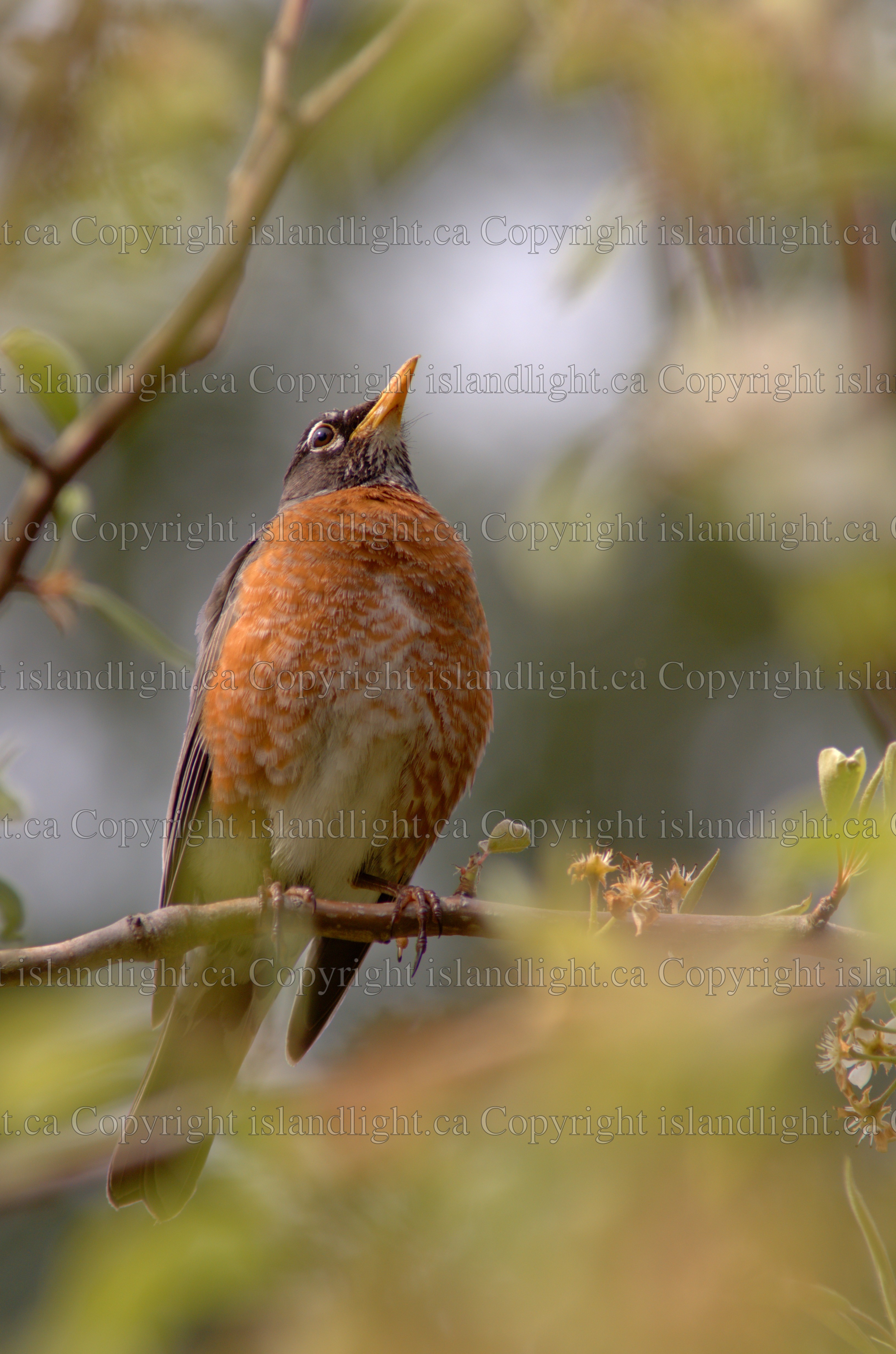 Robin in a Pear Tree ~ Thrush Stock Photo